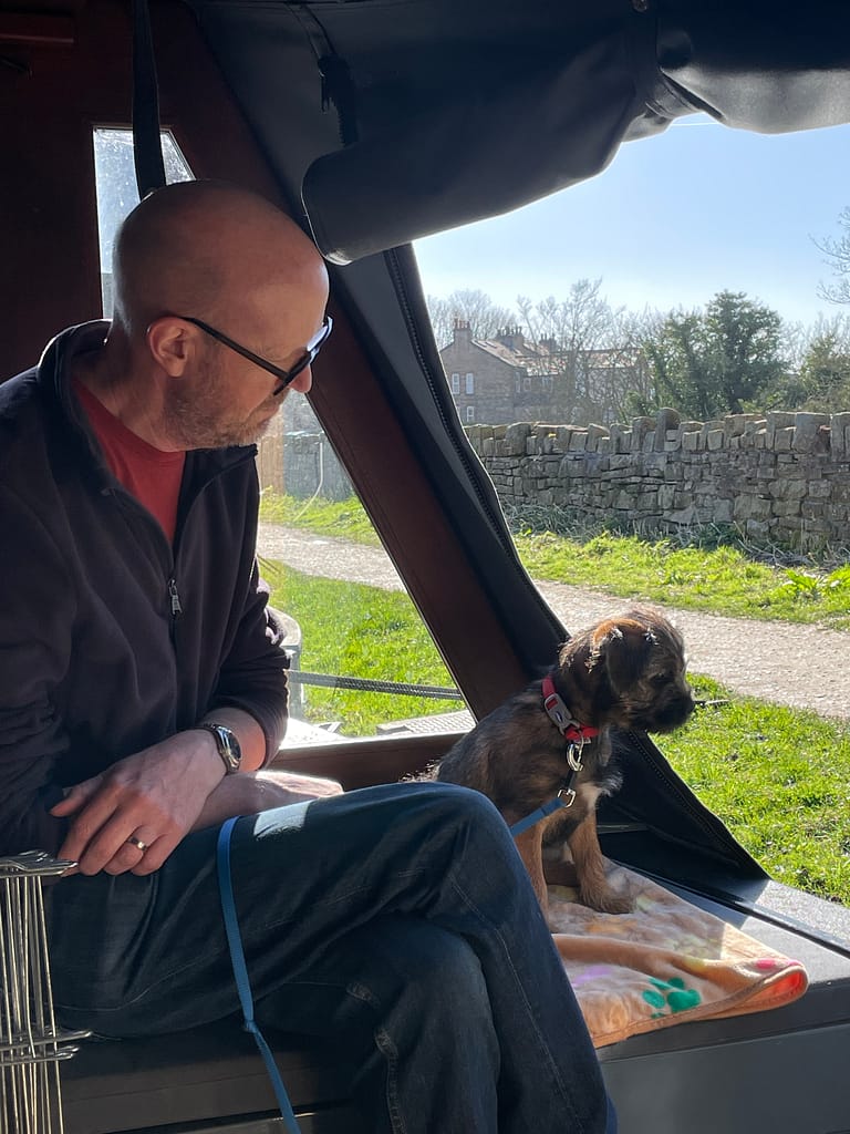 Speaking of solar, it’s been sunny all day so we set a new record for generation: by 5.30 this afternoon we’d done 3.7kWh. The batteries were on 95 per cent when we got here, and had got to 100 by mid afternoon. We turned the Refleks stove off when we arrived, and after lunch Macc and I went and sat on the locker in the well deck watching the world go by. It was one of the very rare occasions he’s just sat and relaxed; normally he wants to be on the go and getting into stuff all the time.