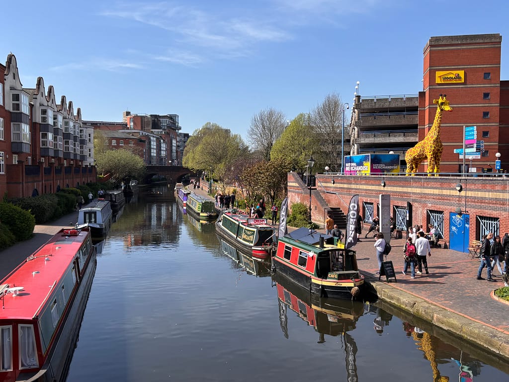 There was a space on the sunny side of the Main Line, just beyond a cafe boat and an ice cream boat. The bollards are always the wrong distance apart, so we’re quite close to the boat ahead (which we also saw at Fradley and the bottom of the Curdworth Locks).