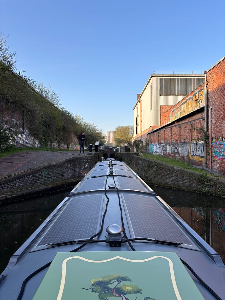 We had a brief pause here so Macc could come out and go to the loo, as grassy areas are in short supply up the Farmer’s Bridge Locks.