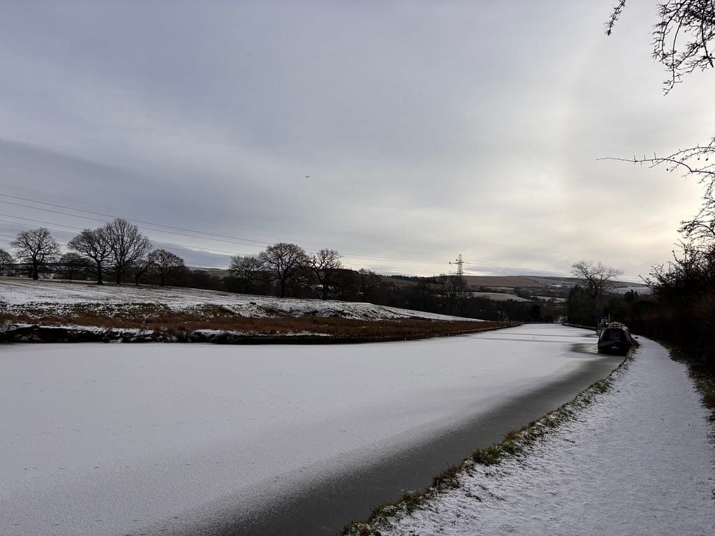 We returned via the towpath, and the canal looks really odd when it’s covered not just in ice but snow as well. There were even footprints in the snow, probably foxes rather than people’s dogs.