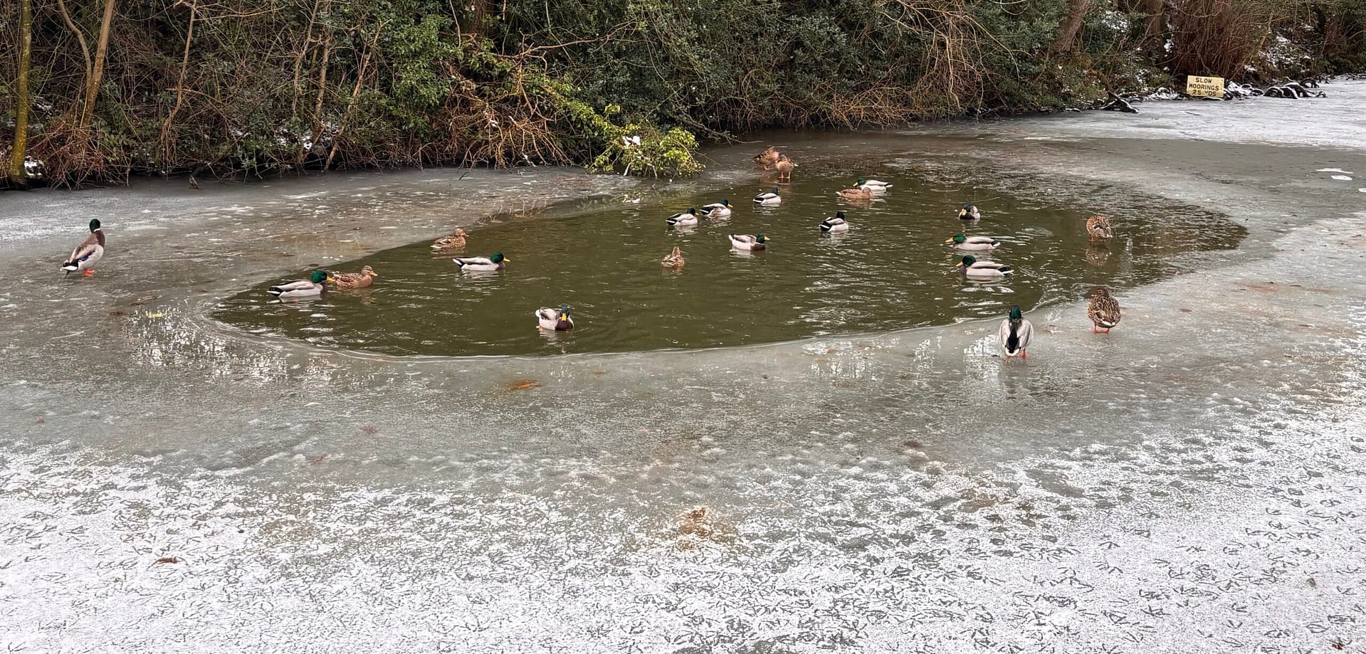 We returned via the towpath, and the canal looks really odd when it’s covered not just in ice but snow as well. There were even footprints in the snow, probably foxes rather than people’s dogs.