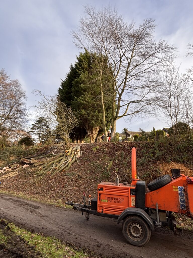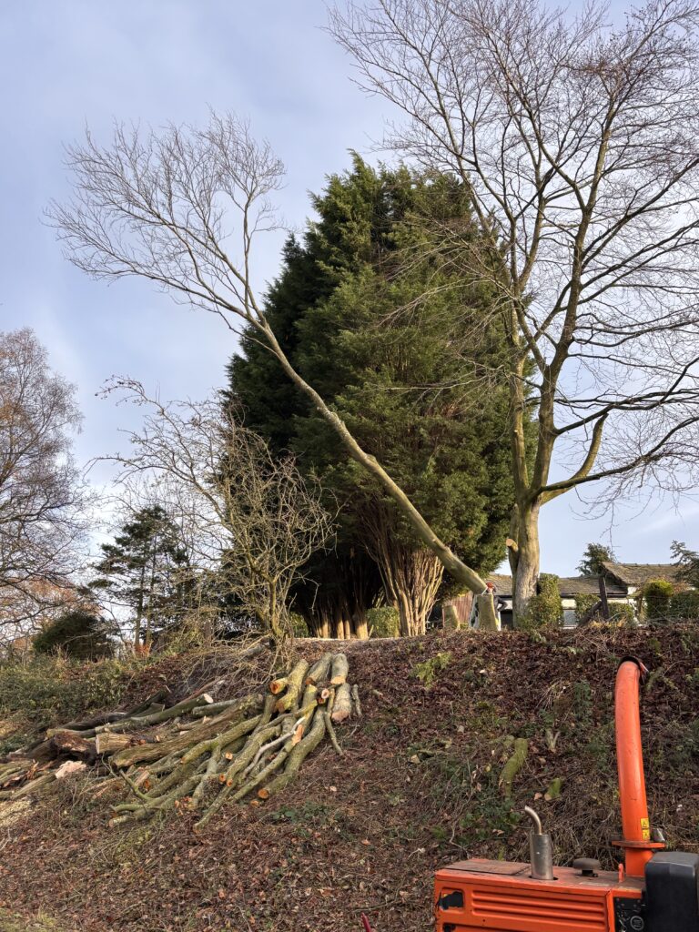 We told Mark all about the boat and he took photographs, and then headed up to see Donna and Jam at Braidbar. We had lunch and went out for a walk down Middlewood Way and back via the towpath. On the footpath, there was a team of tree surgeons at work, with one of them knocking a wedge into a tree that needed to come down. We waited to see it fall.
