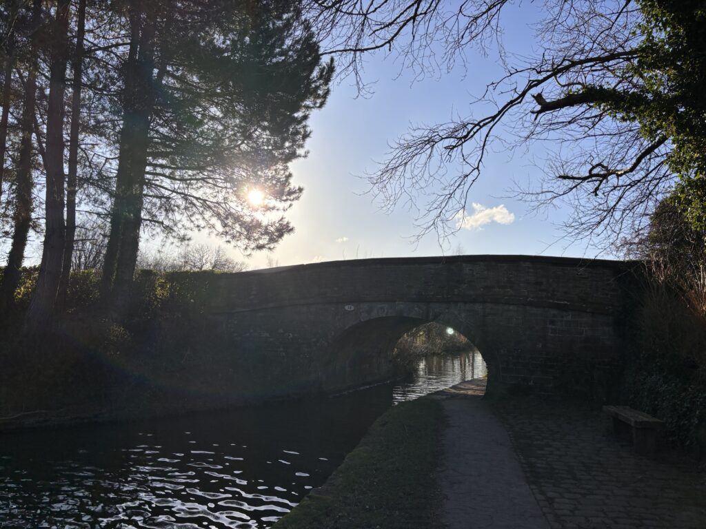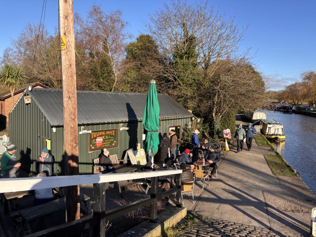 With nothing particularly planned for today we were in no rush to get up, but once we did we got some washing on and went for a walk while the dryer did its thing. We went north on Middlewood Way, where there had been a frost. We walked to beyond Higher Poynton and took the track up through the woods to the canal towpath, which was busy with people out for a Boxing Day walk. The Trading Post was open and doing a roaring trade.