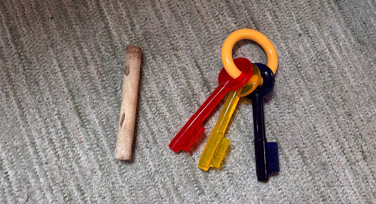 Today our friends Billy and Sheila came to visit, mostly to see Macc! They brought him a gift of teething keys, which their dogs liked. Macc was soon chewing on them, and they turned out to be bacon flavoured, which possibly goes well with the coffee.