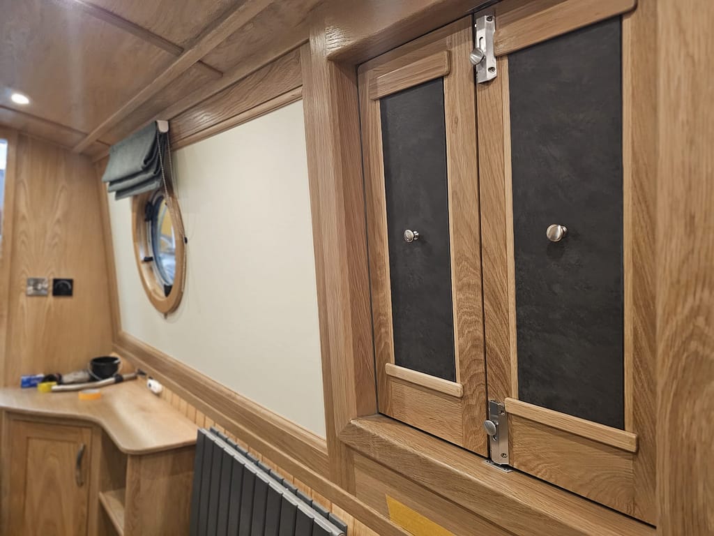 We also now have blinds on the portholes in the forward part of the boat, and there are drop-ins for the side doors.