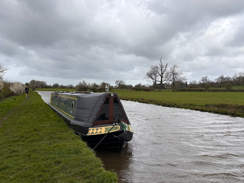 We turned into Aston Marina and had to fight the wind to get tied up on the diesel point. The price here (and it’s normally pretty good here) is currently 141.8p per litre basic. Nick, the manager, said there had been some massive increases in the wholesale price as soon as the bombing of Iran started. It’s always nice to visit Aston and Nick is very chatty so it was a while before we set off again. We continued for another 40 minutes or so, to a spot we like near Burston, between Bridges 85 and 84. It was very windy when we got here and it’s continued ever since, so we’re quite glad we stopped when we did. There have been waves on the canal and passing boats have splashed through them.