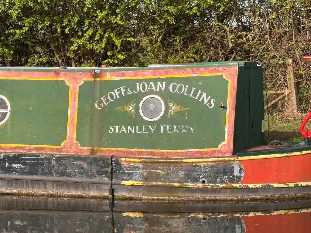 At the moorings above the next lock there’s a boat owned by Joan Collins — but probably not that one.