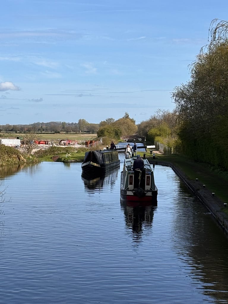 We met one boat coming down after a couple more locks. Below Lock 5 is where HS2 will cross the canal. There’s a big new bridge over the M42 which runs alongside the canal just here, and a huge compound on the offside.