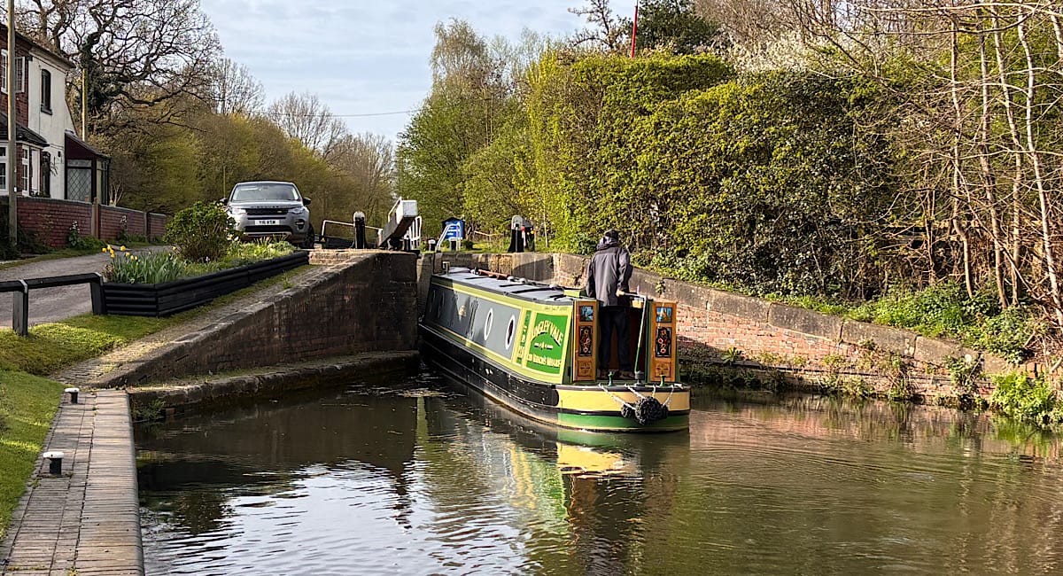 Easter Monday, and our first uphill locks in Kingley Vale. So far, from the upper end of the Macc, we have come down nearly 95 metres or almost 311 feet, but as every boater knows, Birmingham is built on the top of a mountain so it’s uphill whichever way you approach it. We set off at about 9; the bottom lock was full and needed turning, but all the others were with us. It wasn’t long before we’d made our first uphill step.