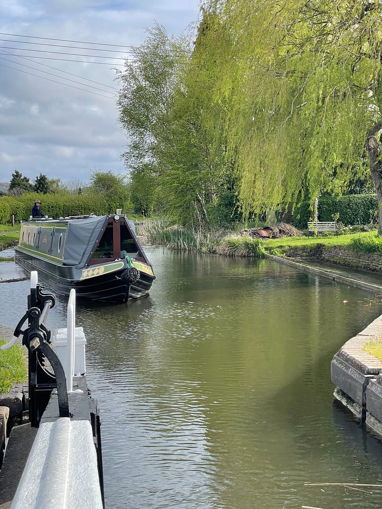 The top two locks needed filling, but the third one was already full. The fourth lock completed the flight, and then we turned left onto the Staffs and Worcester Canal towards Stourport.
