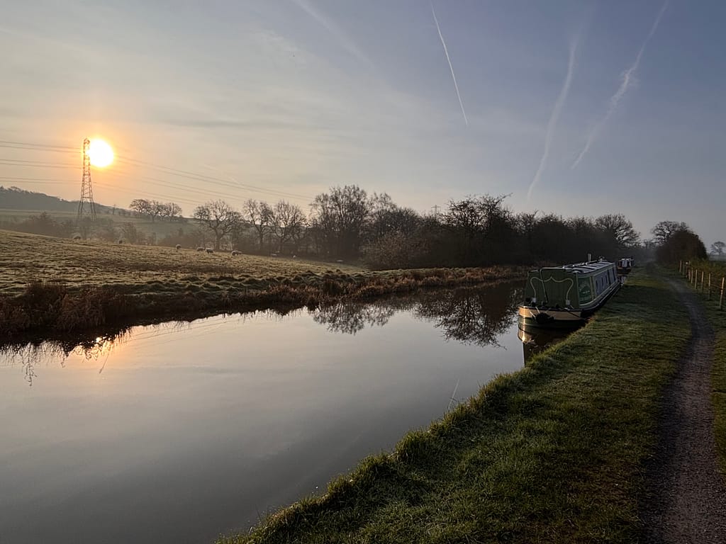 A momentous day today because we did our first locks in KV and with Macc. But first, we woke up to a beautiful sunny morning, although it was also a bit misty. After Macc had had his breakfast and while Adrian was in the shower, I took Macc for a walk along the towpath to make the most of the morning and to wear him out.