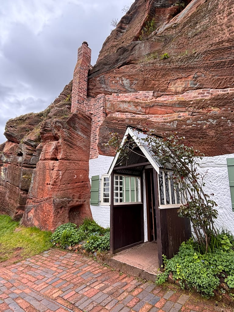 We have a lot of time to get to where we’re going, so another dot day was planned. It also meant I had time to do more research for an article about Kinver. It’s unfortunate the Rock Houses are too far away for Macc to walk to, because he’d have loved it up on Kinver Edge. It takes about half an hour to walk (mostly uphill) to the Rock Houses, a National Trust site that’s not open very many days a week. These were the last inhabited troglodyte dwellings in England, and it’s fascinating to think of people living here — which they did until the 1960s.