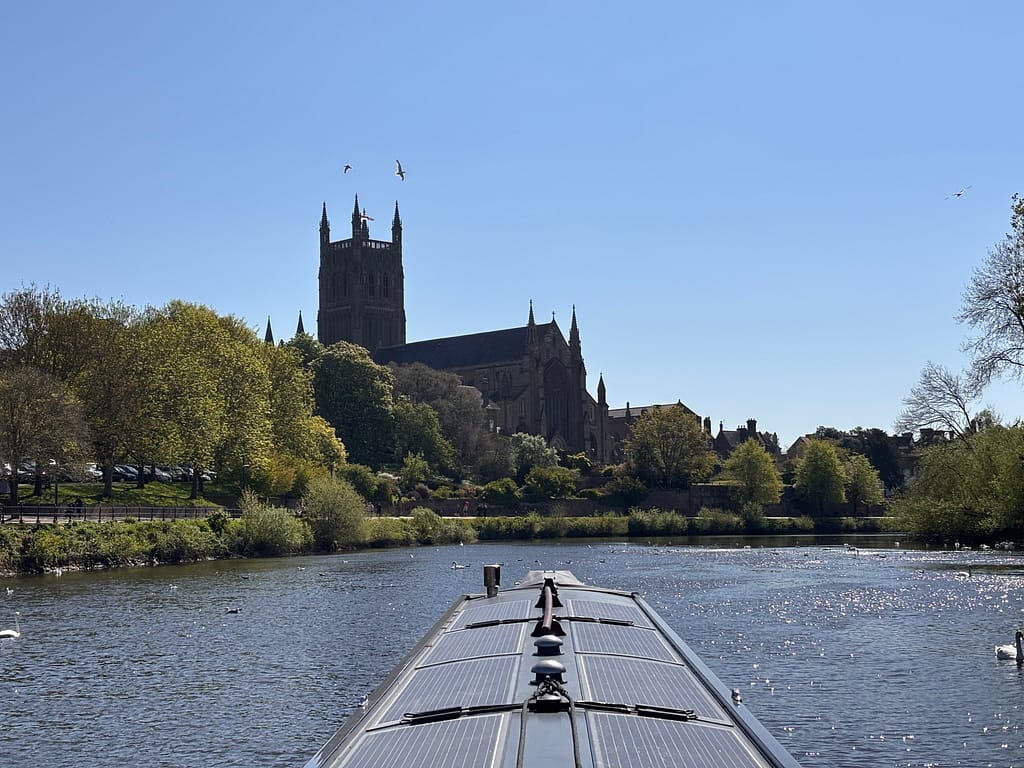 The racecourse moorings were almost empty, but we were carrying on. Briar Rose hung back to let us pass, and we led the way into Worcester proper.