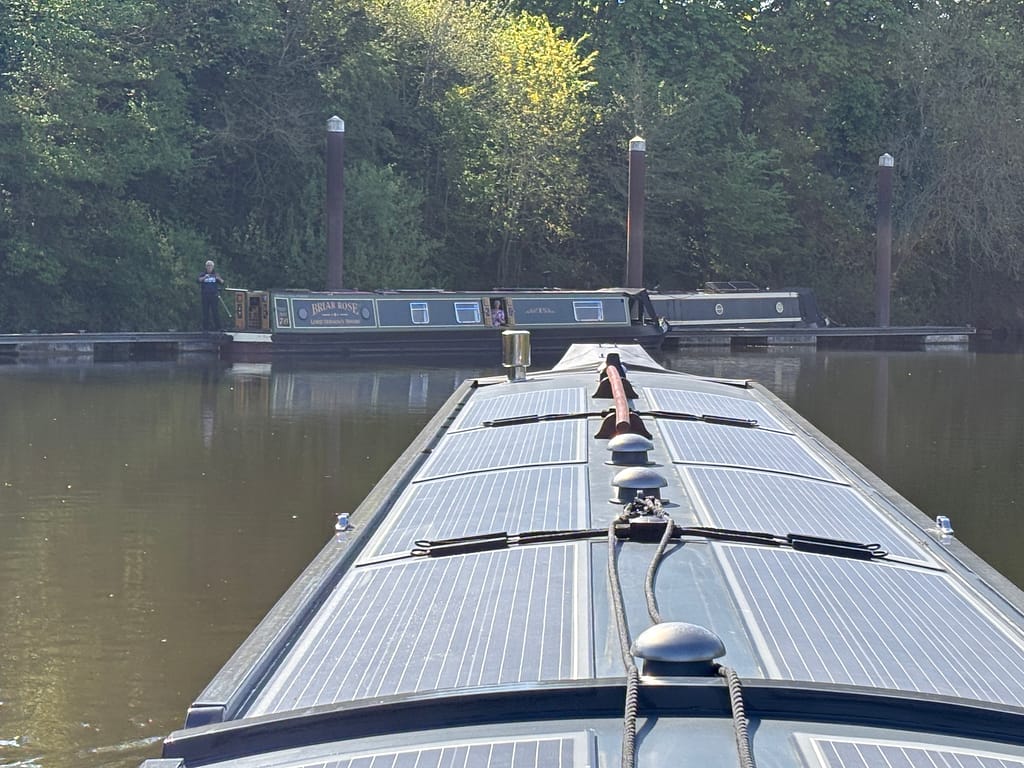 We went on board BR to see all the improvements Helen and Andy have made since buying her from us. We thought it might feel a bit odd but it didn’t really; it’s their boat now, and we have our new one too. This afternoon, I picked up a couple of deliveries from a locker, including some air filter foam for the loo vent, so try to stop water coming in. We have been invited for dinner this evening by Helen and Andy, but because if Macc we’ll be having it on board KV; in fact I think to avoid passing hot things between boats, we’re cooking it on KV! It’s been a lovely day’s boating, with more great company to come.