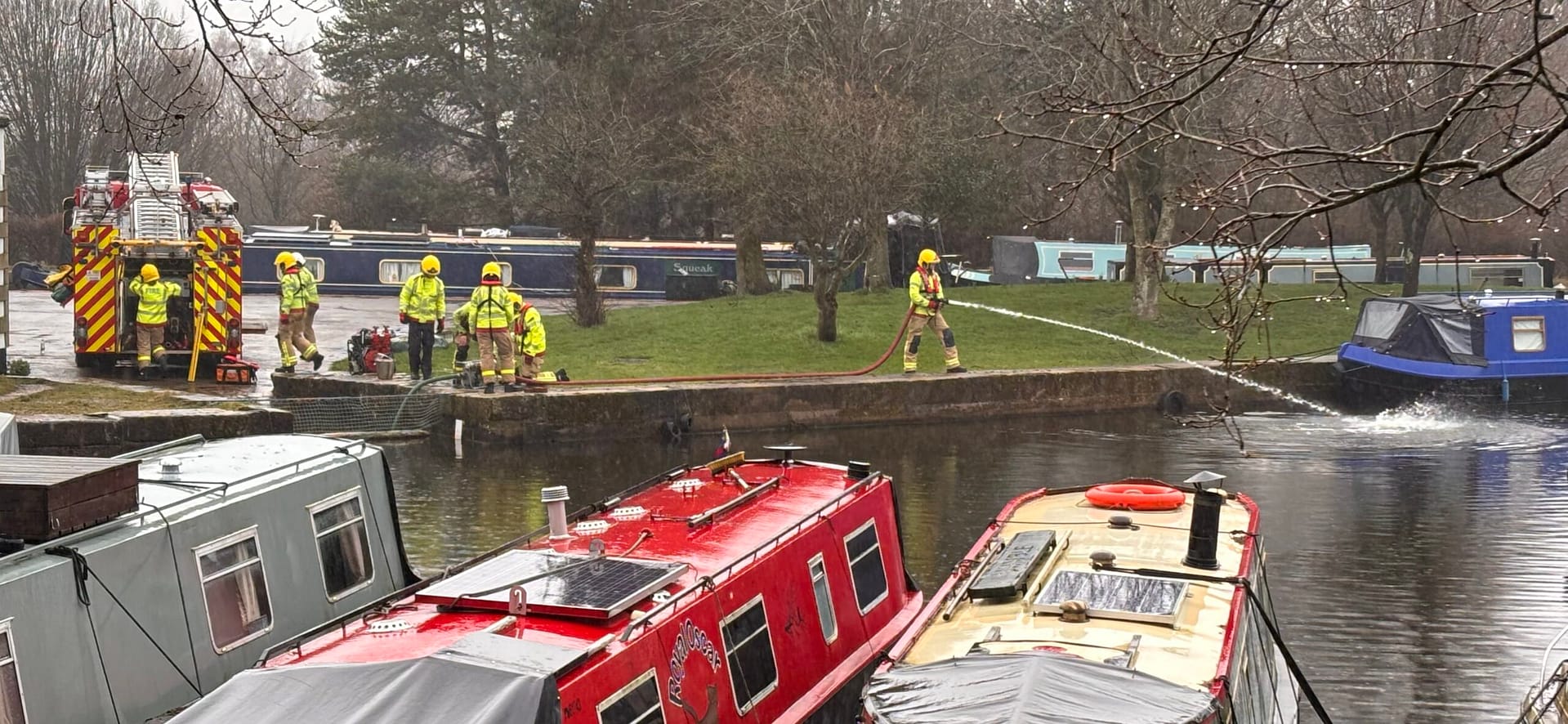 We got back to the bot last night after our holiday, so today we had a list of things to do — most importantly going to Tesco to get food as the cupboards and fridge were bare. We’ve also done washing and filled the water tank, and I’ve managed to get a rather wet walk in. It seems to have rained the entire time we were away, and hasn’t stopped today either. Perhaps the most interesting thing that happened was that the fire brigade turned up to test a pump and some hoses in the marina.