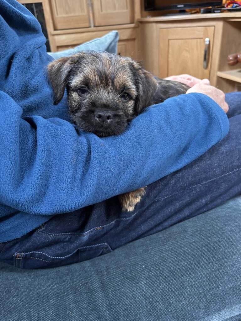 We didn’t really get wet at all this morning, but this afternoon it’s been chucking it down periodically. The towpath is very muddy, so Macc’s toilet trips have been as brief as possible. He’s also played lots of games and been improving his sitting. He also really likes a cuddle when he’s a bit tired, and asks to come and sit on a lap.
