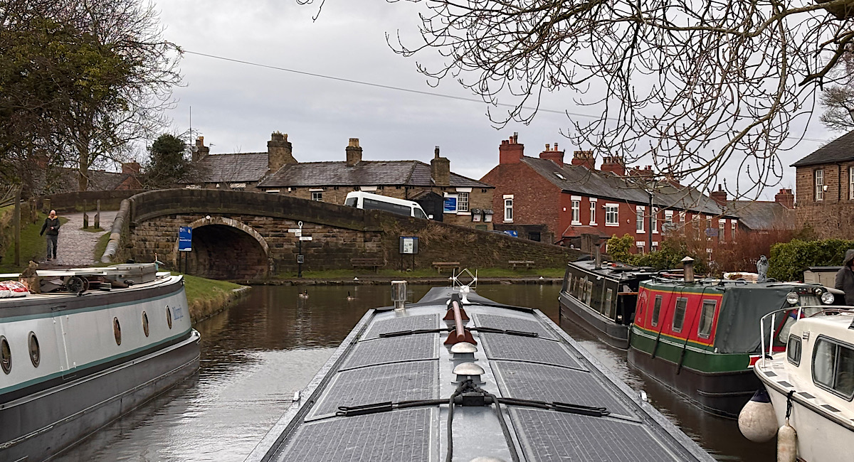 At Marple Junction we turned onto the Macclesfield Canal again, hoping for a decent mooring. There are more boats here than when we left yesterday; the space opposite the water point had gone, as had one immediately through Bridge 2. The spot we’d left yesterday was occupied, but there was one beyond it, so we went there. But the bow wouldn’t come in, it was stuck on something under the water. In the end we managed to get it off, and by moving back as close as we could to the boat behind, we got both ends close to the bank.