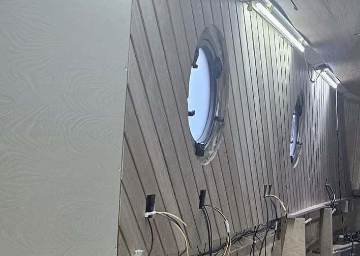We were only up at Braidbar on Monday, but a lot seems to have happened since then. We’ve been sent the end-of-week photos, which show that we have ceilings, tongue and groove on the cabin sides at the back, and painted panels towards the bow.