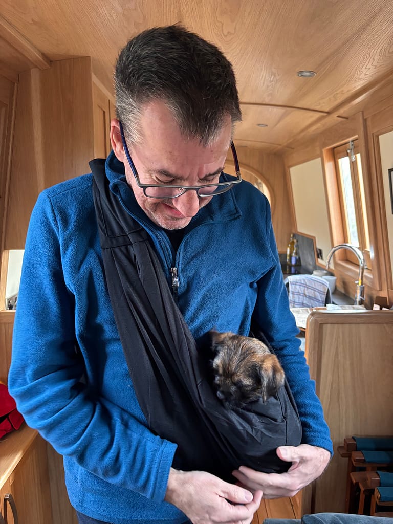 Half an hour after we’d left the marina, a couple of Amazon deliveries had arrived, so I went back to get them. One was a sling so we take take Macc out without him being on the ground.