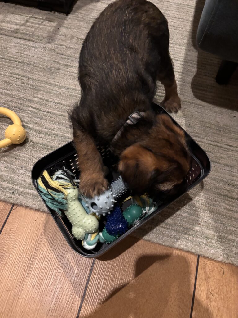 There’s only been one indoor accident so far, which we think is pretty good, and that might have been because he was a bit spooked by another dog when he was outside and didn’t actually do anything. Mostly, we take him out and he does his business almost immediately. He’s been much more confident today, which is nice to see, and seems to be interested in everything new. Oh, and he’s now on Instagram, so follow him at @macc.the.boating.border