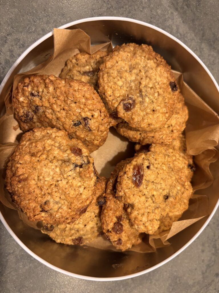 During his morning sleep I made a small batch of oat and raising cookies, as we have visitors tomorrow.