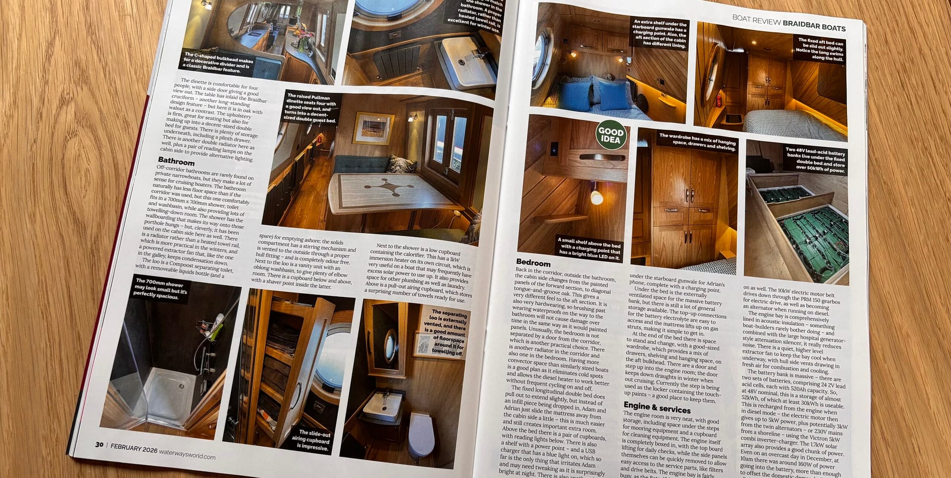 The February edition of Waterways World is out, and includes Mark Langley’s review of Kingley Vale. Fortunately he says very nice things about the boat!