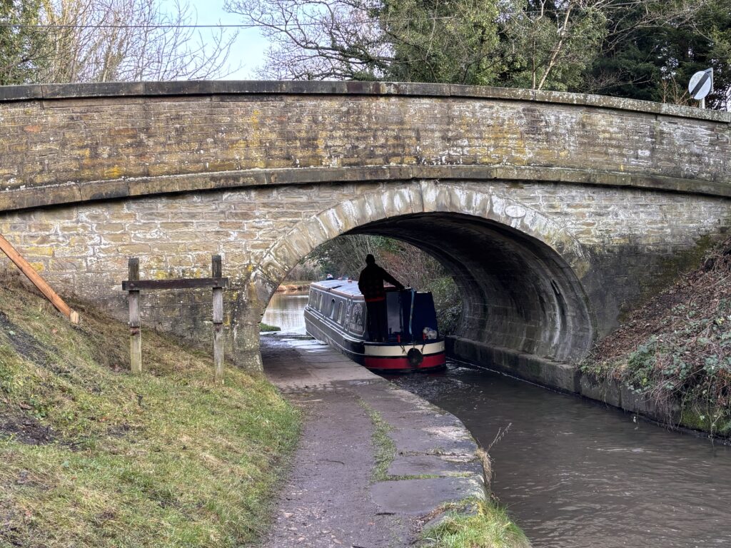 Happy New Year! We did manage to stay awake until midnight, and there seemed to be lots of fireworks around. Then it rained overnight, which meant it wasn’t frosty this morning. We went out for a walk after breakfast, to get our steps done while it was clear. We walked down the towpath to Bridge 21, where we saw a moving boat.