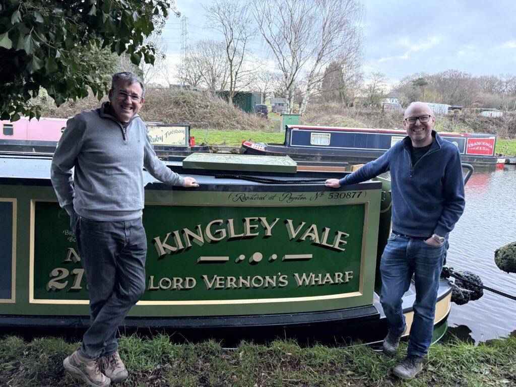 A much nicer day today with even a bit of sunshine! First thing, we walked down Middlewood Way back to Lyme View, so that we could collect a parcel that had been delivered just after we left on Monday. It was a clock that’s now been put up on the bulkhead by the front doors. Adrian also collected the car and headed into Poynton, while I walked back to the boat via the towpath to start prep for our lunch guests. Helen and Andy arrived about midday; they’d come via Altrincham, where they’d picked up a load of wooden boards so Andy can re-do Briar Rose’s engine room.