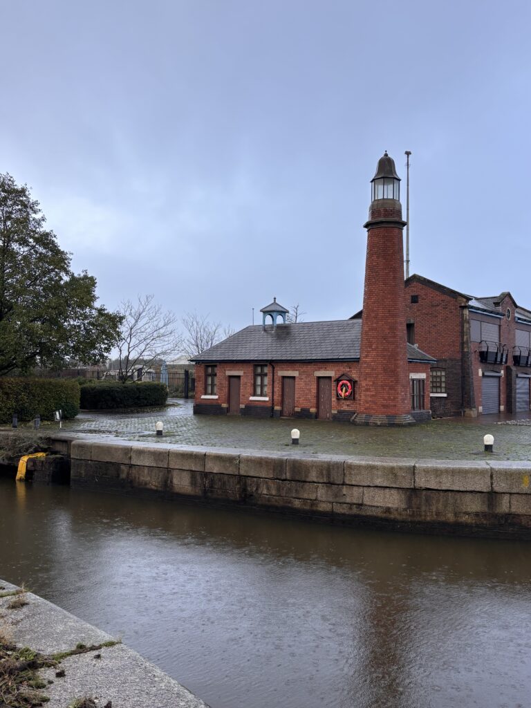 This morning we drove over to the National Waterways Museum at Ellesmere Port, which is less than an hour from here mostly on the M56. I’d arranged to do some recordings for the Christmas edition of my podcast, The Water Road, which will be out on Friday. As we were there a bit early, we walked along the Manchester Ship Canal, and had a look at where we came in off the canal into the museum on Briar Rose, back in 2013.