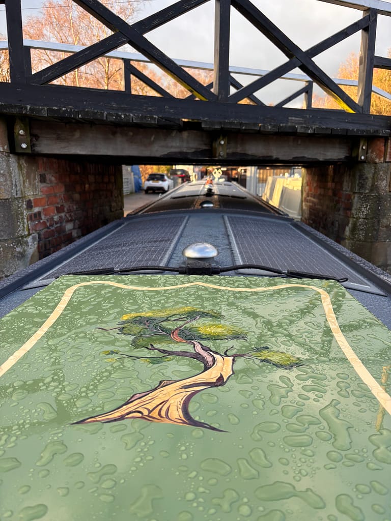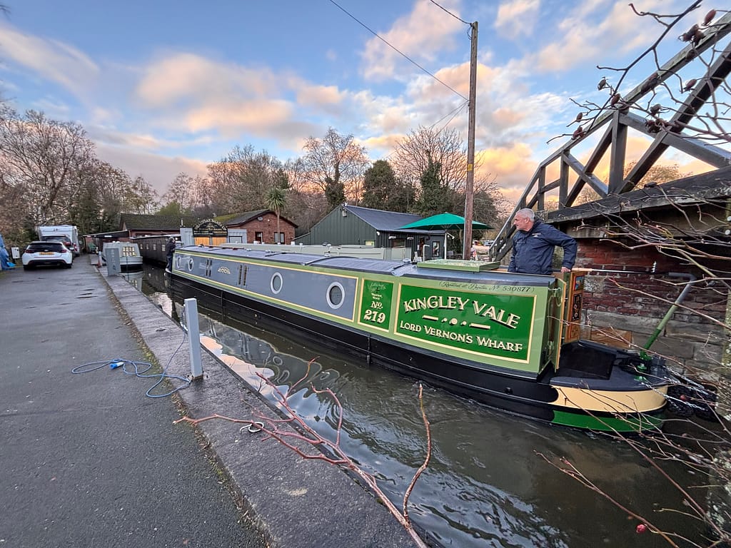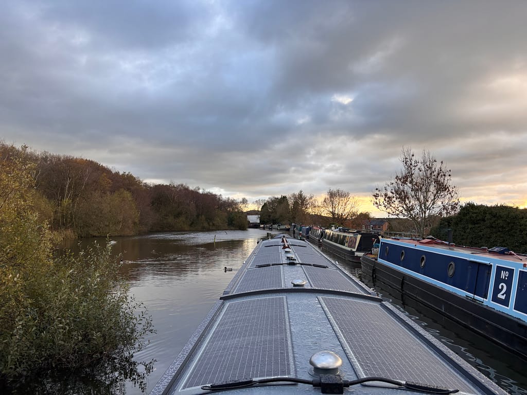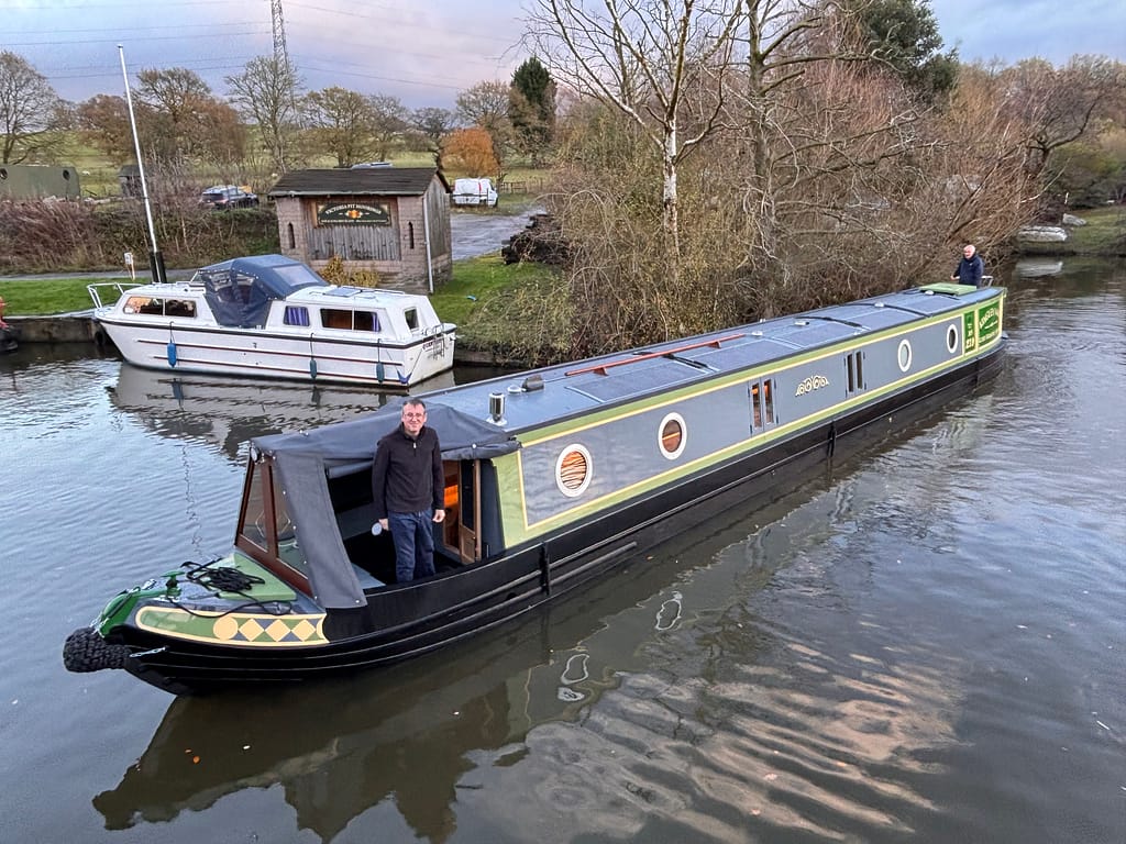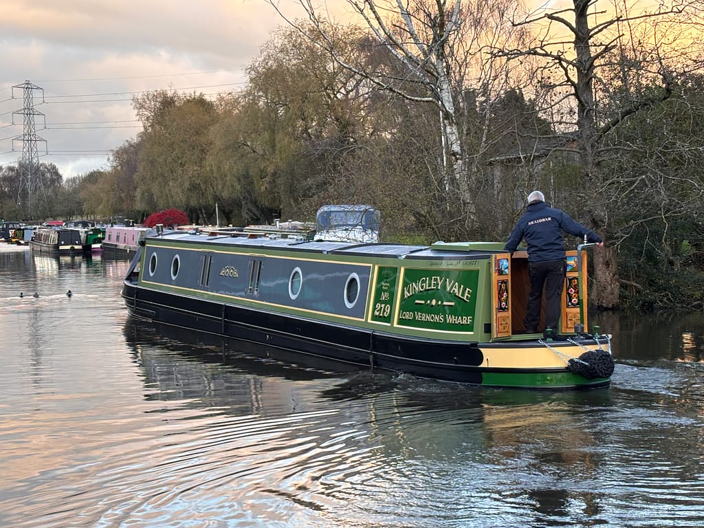 At lunchtime we went down into Poynton for a sandwich and to do some shopping for the next few days. Back at the boat we had a visit from Nicki, who’s Jam’s cousin, who had the boat a couple ahead of ours. Then it was time for the acceptance cruise, backing out of the arm and taking the boat down to the winding hole just beyond the Deeps.