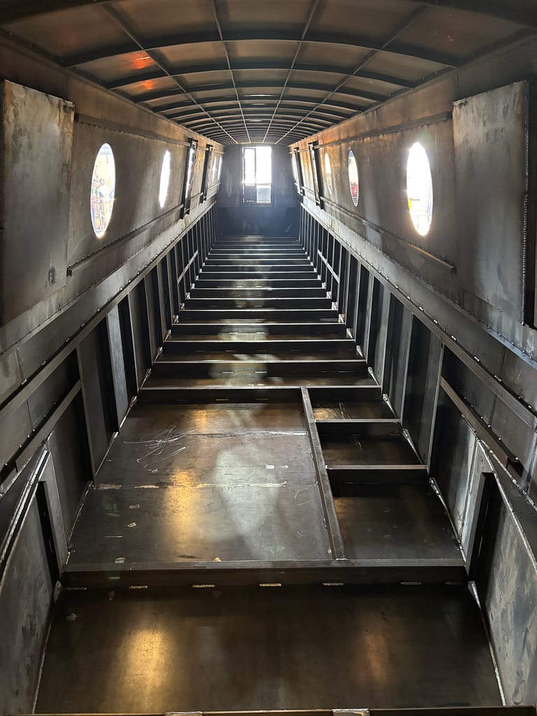 We were also able to climb up onto the stern deck, to see what it looks like inside. You can see all the bracing, and work out where things will be.