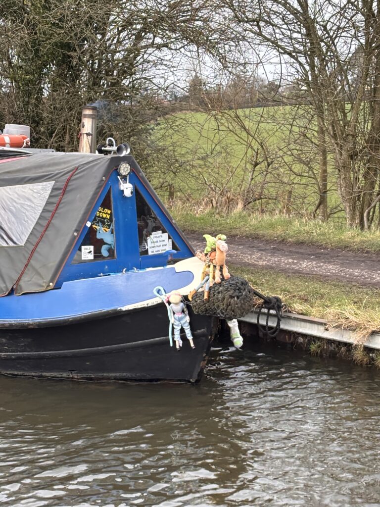 I took Macc out at 5 this morning and then he settled back in his crate much more quickly. We’ve now got a cheap camera so we can see him on our phones. This is useful from the other end of the boat, but will so come in handy in the future — perhaps if he’s asleep while we’re doing a flight of locks for example.