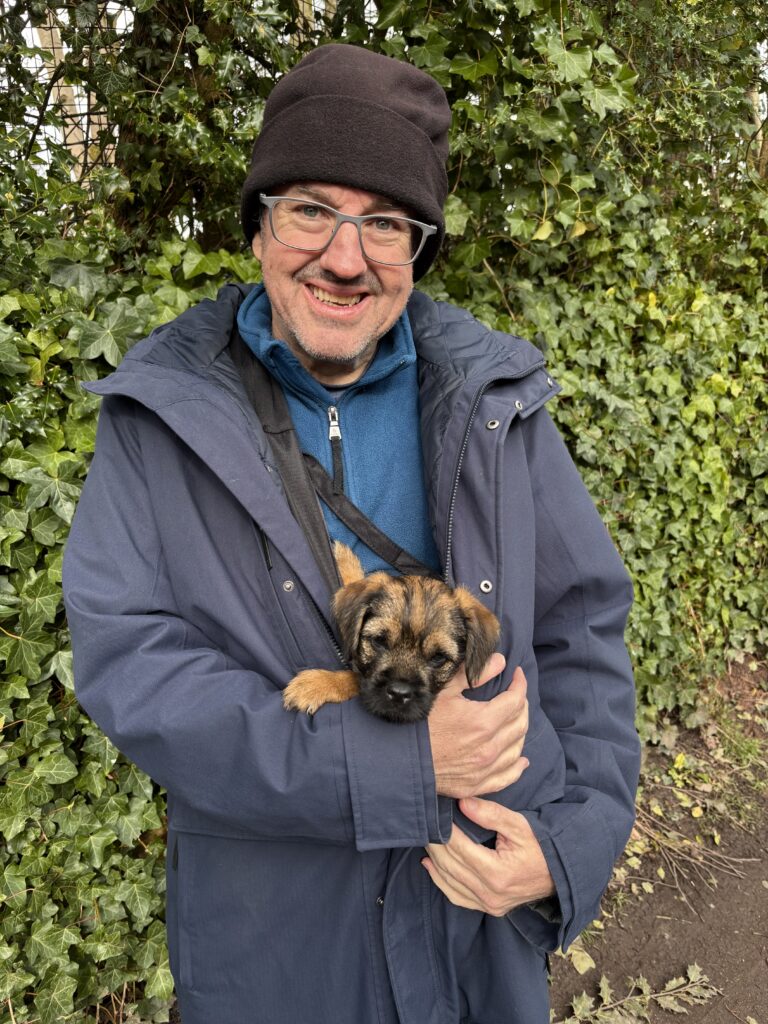 We saw a very nice vet calls Nicky who gave Macc the once over, which is good because lots of people say you should get a new puppy check anyway. She saw no signs of fleas or skin problems, except that one of his paws had a pad that was a little red. She thought he might have stepped on something irritating. So we now have some soothing shampoo to be used on his feet, which is probably not a bad thing because he’s spent the past few days wading through mud. Because of living on the boat, she also recommended we put him on flea and tick treatment — which is probably a good idea given that I had a tick bite myself last summer. We’ve also booked him in for his second vaccination, which means we’ll be in this area for an extra couple of weeks but should make life a bit easier. Macc was a really good boy at the vet, and of course everyone loved him. It turned out one of the receptionists has two Borders at home.