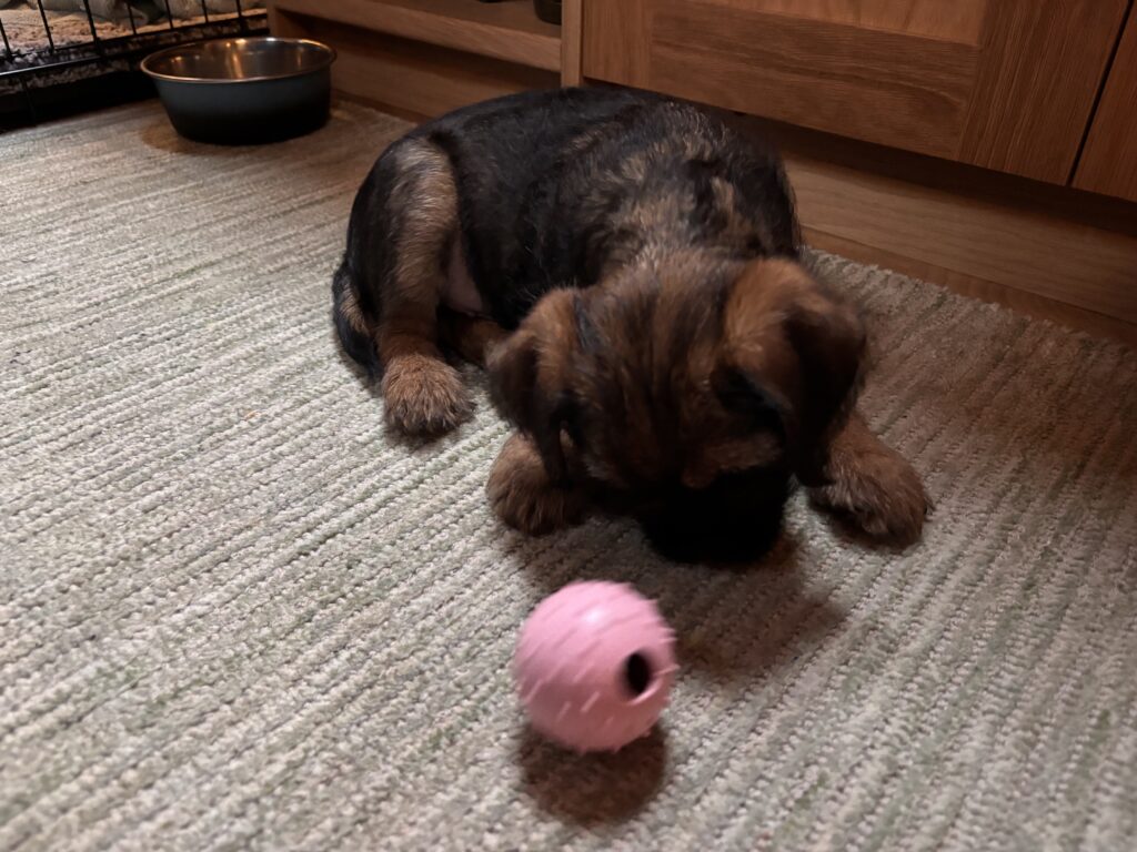 We walked back to the boat, Macc had a sleep, and we had some late lunch. When it was Macc’s tea time, I put some of his kibble in one of his toys and he had a great time batting the ball with his paws or nose to make the food fall out.