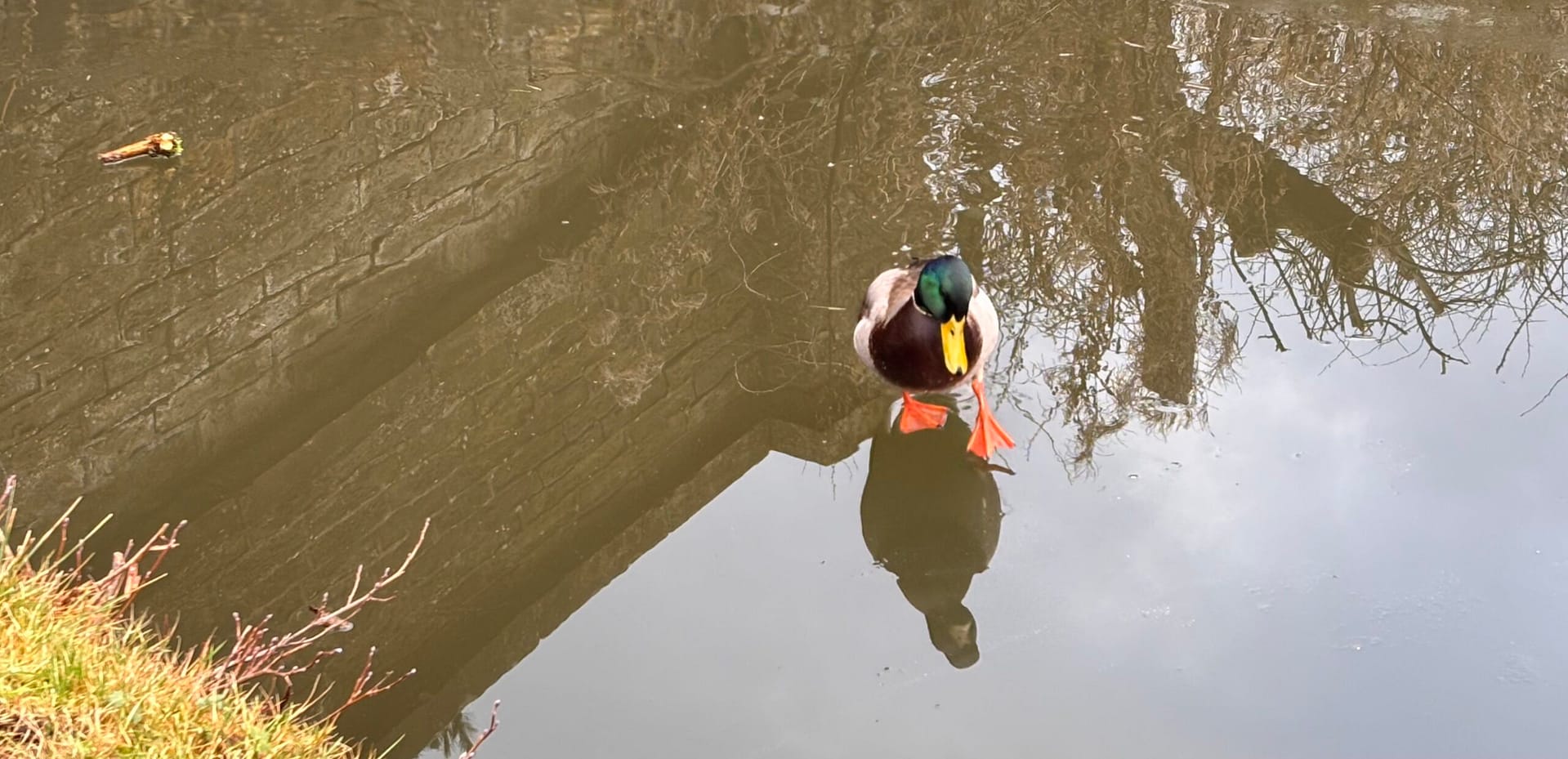 There was a lot of rain overnight, so by this morning all the snow had been washed away. Although parts of the marina and the canal also looked clear, lots of it still had ice under the water — as demonstrated by the duck above, who is not in fact walking on water.