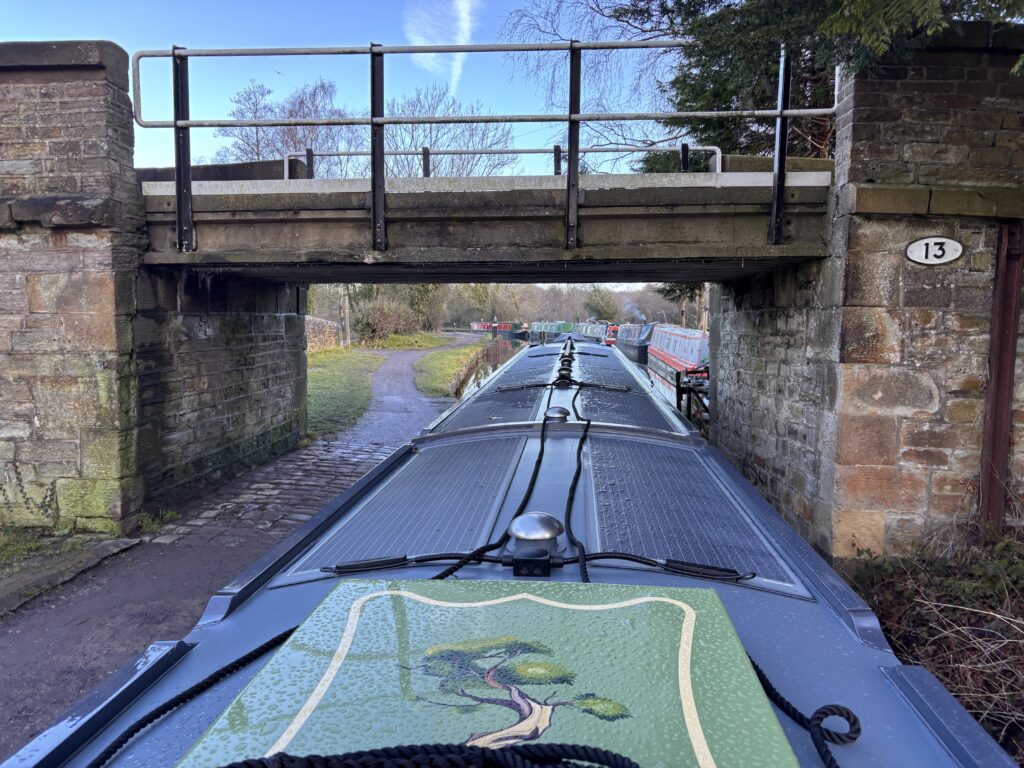 It was really nice waking up and not being in a marina! After breakfast I went back to Braidbar as the problem of the not-getting-very-hot radiator had moved to the saloon. We were clearly chasing an air pocket round the system, but it hadn’t yet made its way to the header tank. Jam came to investigate, and in the end we decided we’d leave the Webasto on while we went to turn around, in the hope the movement of the boat would help shift the air. It was quiet. Nice morning as we departed; I started under electric power, and then once past the Victoria Pitt moorings switched to the diesel engine to give the batteries a charge.