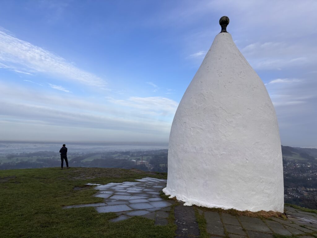 We could see Alderley Edge and the tower blocks of Manchester. We talked to a couple of other people up there, who pointed out all the surrounding hills too. One of them was a keen walker who was telling us about a thing a man is doing for the local hospice. Each day he puts a holly walking stick next to White Nancy, with the name of someone who used the hospice. The idea is that people take it with them and leave it somewhere else, and log the location. There are going to be thirty-one of them in all.