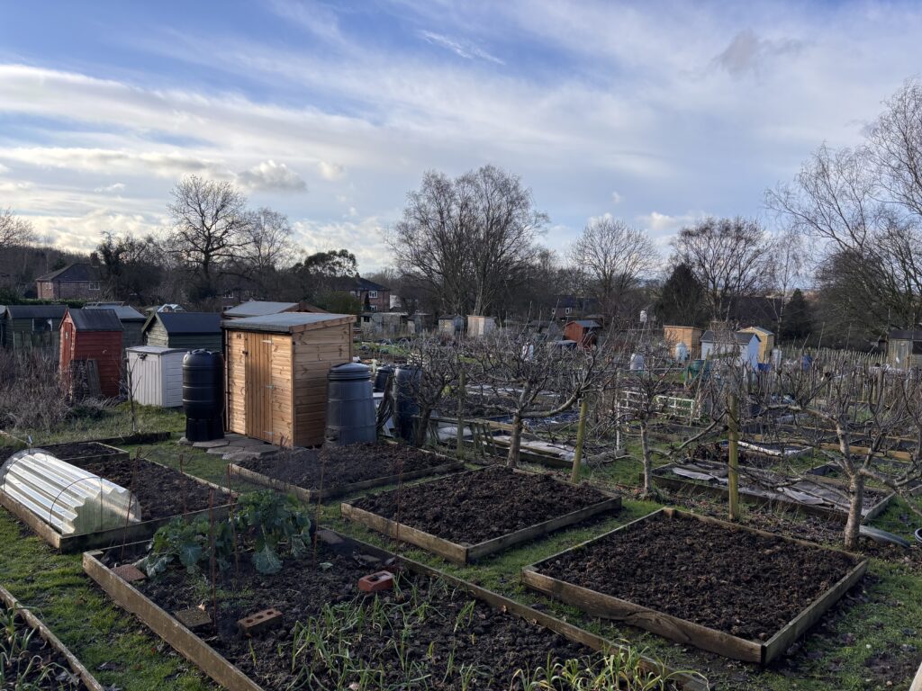 Anyway, I walked up Park Lane and then bore right, and then took a footpath behind some houses which went past the Scout Hut and alongside some very neat allotments.