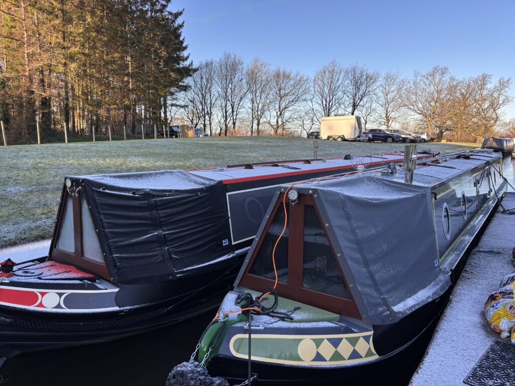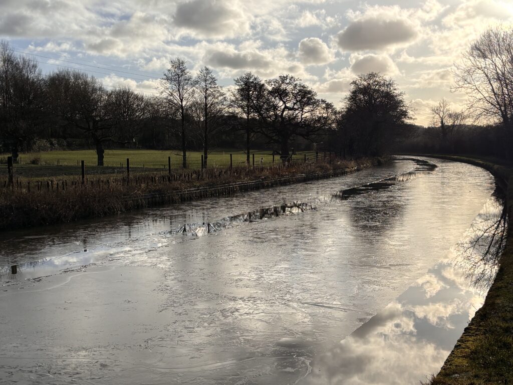 The big job of the day was a trip to Tesco for a decent stock up. The store was the quietest we’ve seen it, which was good. When we got back Adrian unpacked the bags while I set about filling the water tank. We were down to about half, but it’s supposed to be colder for the next few days so we thought we’d fill it while we had the chance. After lunch we went for a walk, and you could clearly see where a boat had cut through the ice on the canal.